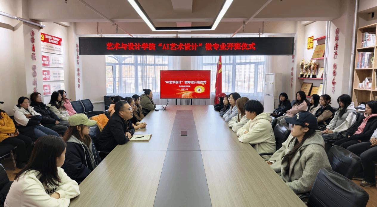 解佳凡在致辞中指出,“AI艺术设计”微专业是人工智能技术与艺术设计深度融合的跨学科产物。微专业的开设既是对传统艺术设计教育的创新突破,更能切实提升学生核心竞争力:一方面通过AIGC工具让学生掌握前沿设计技术,丰富创作手法,显著提升设计效率与作品质量;另一方面课程体系精准对接行业紧缺岗位,校企联合的实战训练与产学研合作项目,能为学生积累行业经验,拓宽就业渠道,为未来从事设计类岗位奠定坚实基础。史绍萌简要介绍了微专业基本情况。该微专业学制1学年,共设6门课程、10个学分,采用“双导师制”与“授课+讲座、课内+课外、线上+线下”混合教学模式,通过过程考核与终期答辩相结合的多元评价方式,保障教学质量,完成培养方案后将颁发结业证书。任课教师代表王竞轩表示,将倾尽全力传授专业知识与实践经验,助力学生实现技术与艺术的双重提升。学生代表也发言表态,将珍惜学习机会,主动探索、勤于实践,努力将AI技术与自身专业深度融合,不负学院期望。此次开班仪式的顺利举行,标志着“AI艺术设计”微专业正式步入教学阶段。艺术与设计学院将以该微专业为纽带,持续深化产教融合,为学生搭建跨界成长平台,培养更多适应时代发展的应用型创新人才,为区域经济社会发展注入源源不断的创意活力。