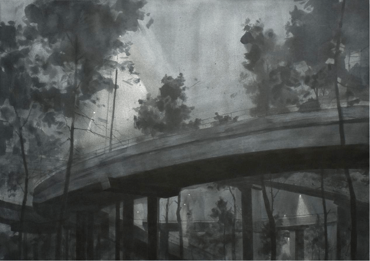 孙嘉伟《夜序·台北大街》水彩画59cm×84cm