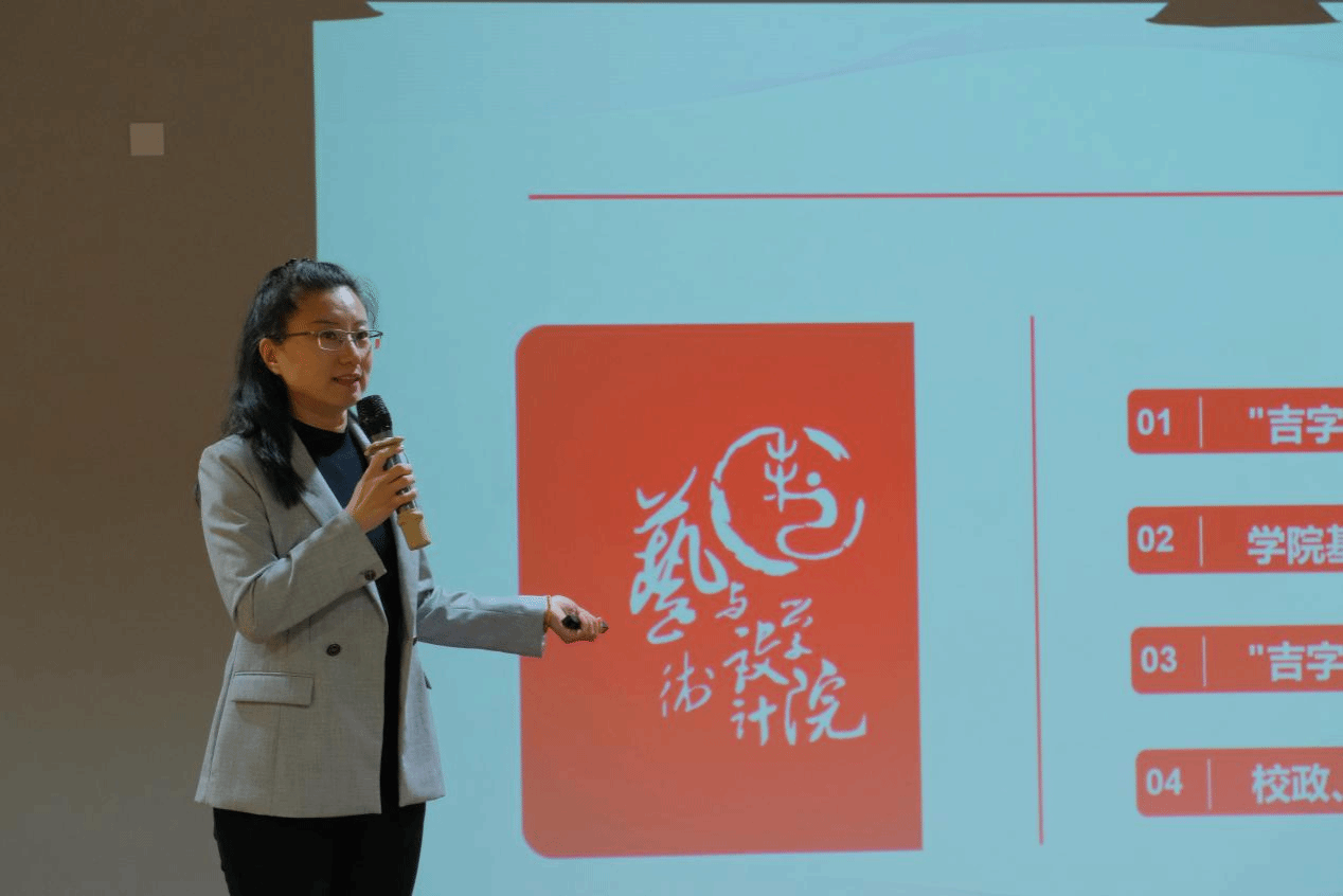 我校校长王洪福、副校长刘克平出席会议,艺术与设计学院六十余名教师与一百余名学生参加活动。活动中,艺术与设计学院副院长邹克瑾代表学院作文化宣讲,系统介绍了学院在教学科研方面的基本情况,详细解读了师生原创的"长白参语""长白鹿鸣"系列文创产品及科普微视频的创作理念,并就下一步与政府、企业及高校开展深度合作提出了具体路径。