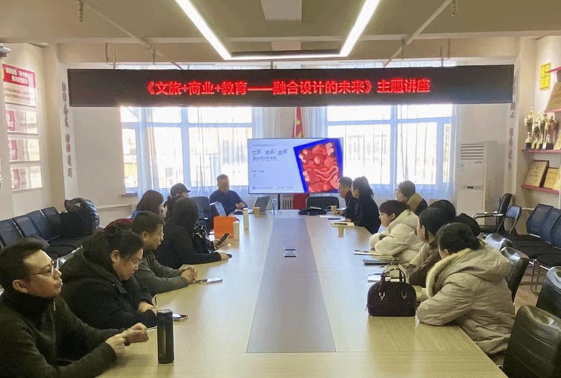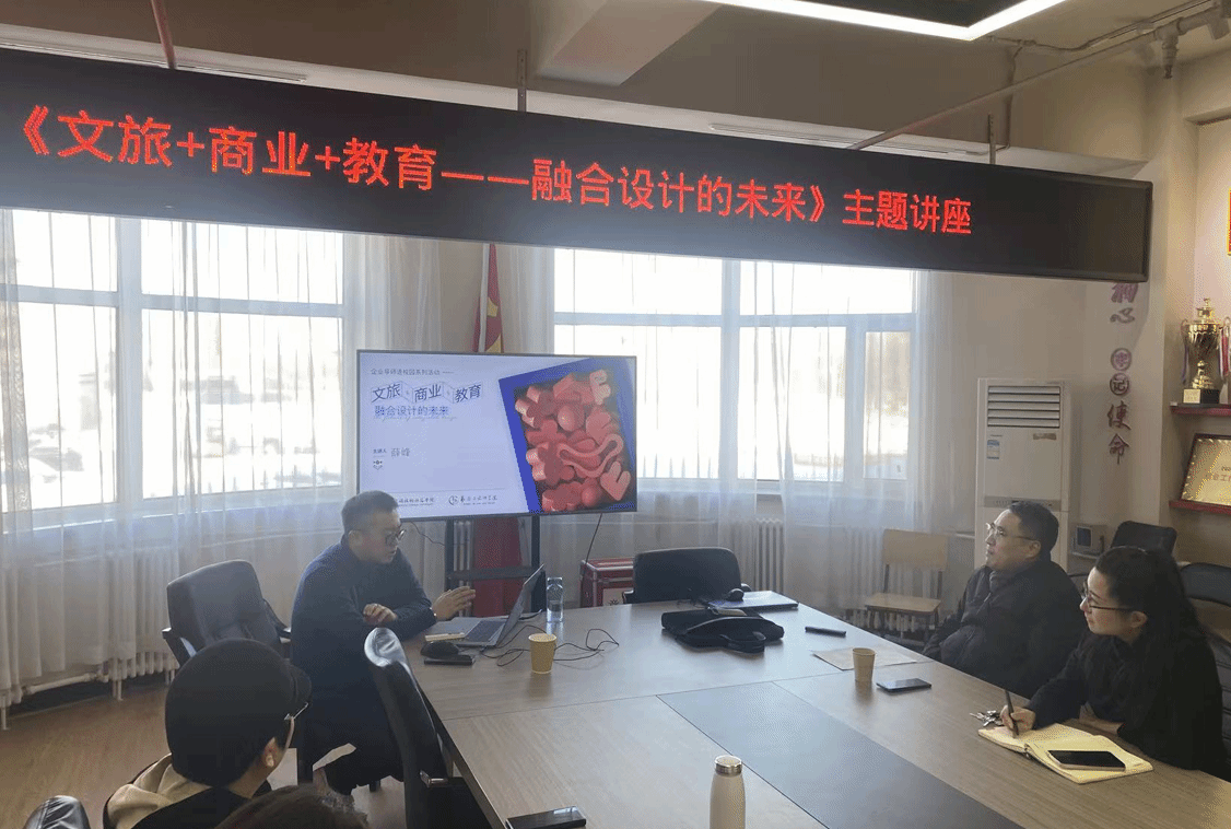 12月25日下午,艺术与设计学院联合学校教师教学发展中心举办“企业导师进校园”活动。活动特邀长春“这有山”文旅商业发展有限公司艺术创意总监薛峰,在第二实验楼223会议室作《文旅+商业+教育・融合设计的未来》专题讲座。艺术与设计学院院长邹克瑾,各系教研室主任、专业教师及部分研究生参加活动。讲座由副院长解佳凡主持。