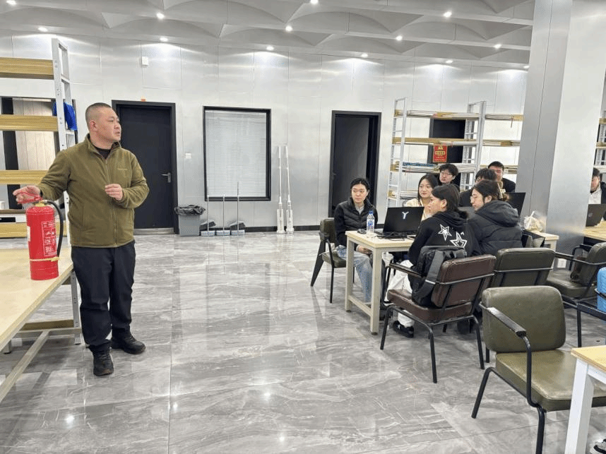 活动伊始,陈朝、刘明博两位老师结合实验室实际,开展灭火器使用专项培训。培训中,他们详细讲解了干粉灭火器的适用场景、日常检查方法,现场演示“提、拔、握、压”四字操作口诀,针对师生操作中的易错环节逐一纠正指导,确保每位师生都能熟练掌握灭火器正确使用方法。